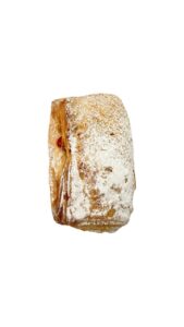 Кондитерское изделие из слоеного дрожжевого теста, вырабатывается из муки пшеничной высшего сорта с добавлением маргарина для слоеного теста марки МТС «Экослайс», сахара и другого сырья с начинкой из наполнителя Ароматик «ТермоТоп Яблоко-корица». Поверхность отделана пудрой сахарной.